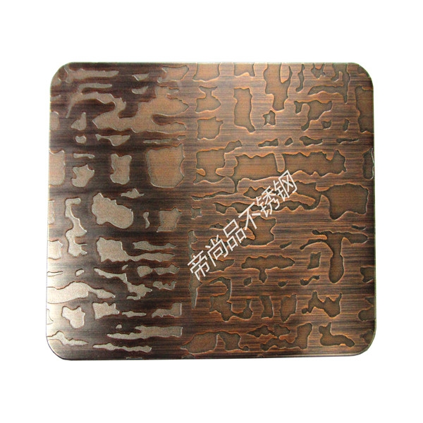 1)采用德國先進水鍍技術,使不銹鋼表面鍍上一定厚度的真紫銅,紅銅,黃銅。達到能做舊拉絲仿古高端裝飾,解決了以往銅鋼復合板材料由高分子膜復合易分離、起泡的缺點。