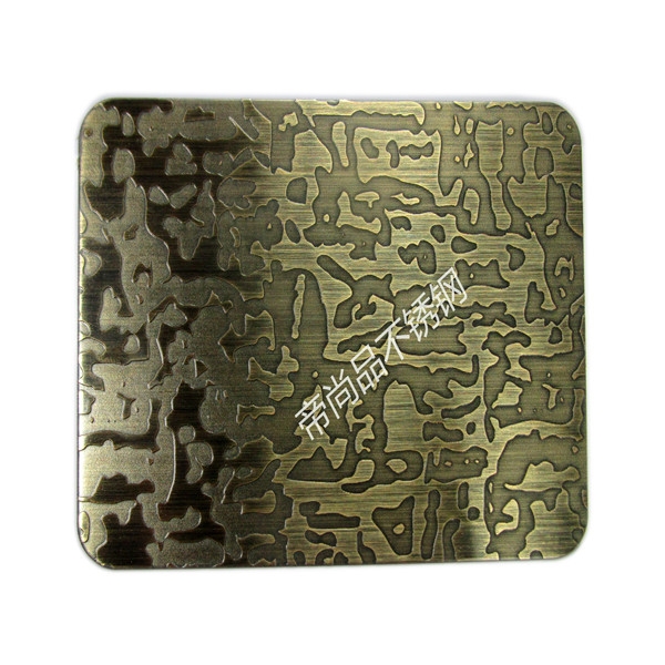 (1)采用德國先進(jìn)水鍍技術(shù),使不銹鋼表面鍍上一定厚度的真紫銅,紅銅,黃銅。達(dá)到能做舊拉絲仿古高端裝飾,解決了以往銅鋼復(fù)合板材料由高分子膜復(fù)合易分離、起泡的缺點(diǎn)。